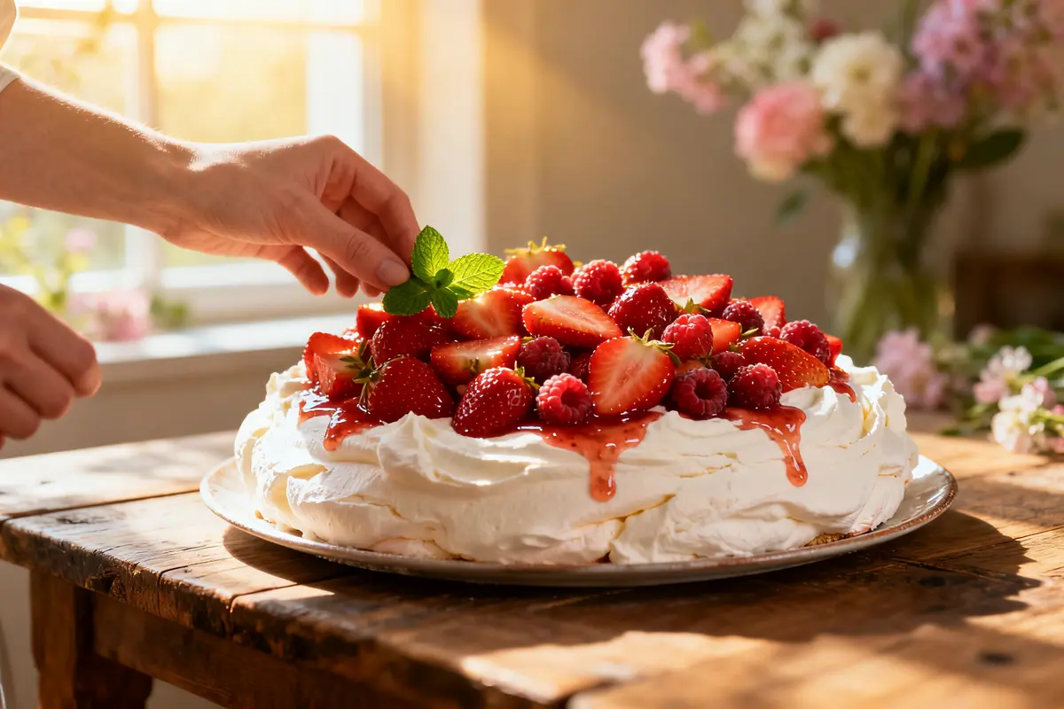 Pour un repas de Pâques réussi, un dessert aérien apporte une touche finale très appréciée. La mousse au citron séduit par sa fraîcheur franche. La panna cotta aux framboises propose une texture veloutée parfaite en fin de repas. Quant à la pavlova aux fraises, elle associe meringue craquante et fruits frais pour un résultat à la fois simple et spectaculaire.